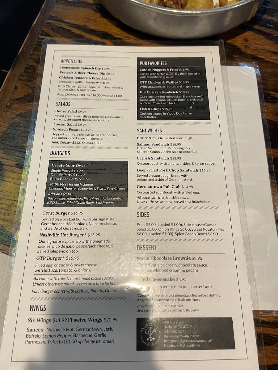 Welcome to Germantown Pub, a culinary gem nestled in the heart of Nashville at 708 Monroe St. This vibrant pub has made a name for itself in the local dining scene, tantalizing taste buds with an eclectic menu that caters to everyone—from meat lovers to vegans. With a friendly atmosphere and a team dedicated to rustic charm and quality, it's no wonder that patrons rave about their experiences here.
